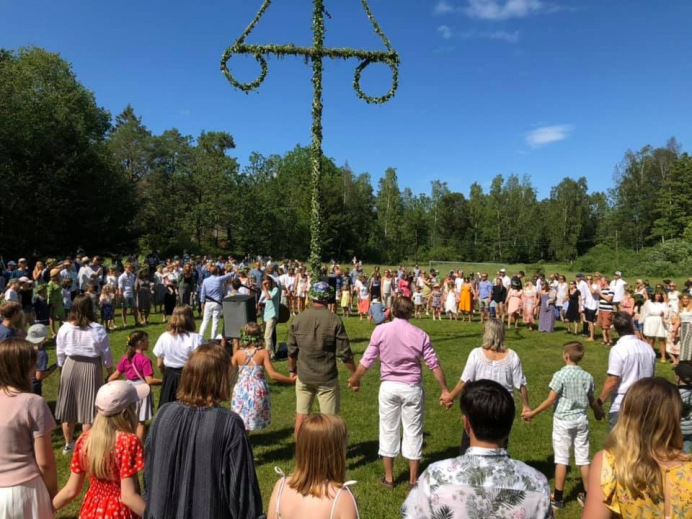 Midsommarfirandet sker på fotbollsplanen där det är gott om plats för de ca 500 personer som kommer. Midsommarstången kläs redan dagen innan. Eftersom många hjälper till går stången lätt att resa. Klockan 15.00 på midsommarafton är det dans till det lokala bandet. Efteråt blir det lekar och fika. Sen tas stången ner för att ge plats för midsommardagens fotbollsturnering. Under midsommarhelgen finns det också en tipsrunda med intressanta frågor om Husarö. Priser lottas ut på midsommardagen.